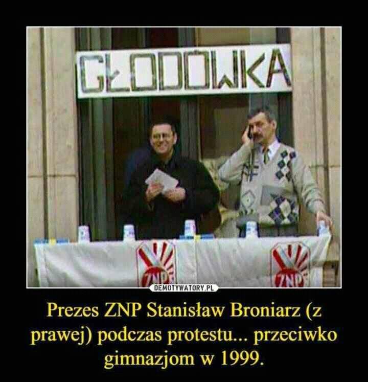 Stanisław Broniarz kiedyś głodował aby zaprotestować przeciwko utworzeniu gimnazjów. Teraz protestuje przeciwko ich likwidacji tyle tylko, że tym razem nie głoduje. A może jakieś obżarstwo?